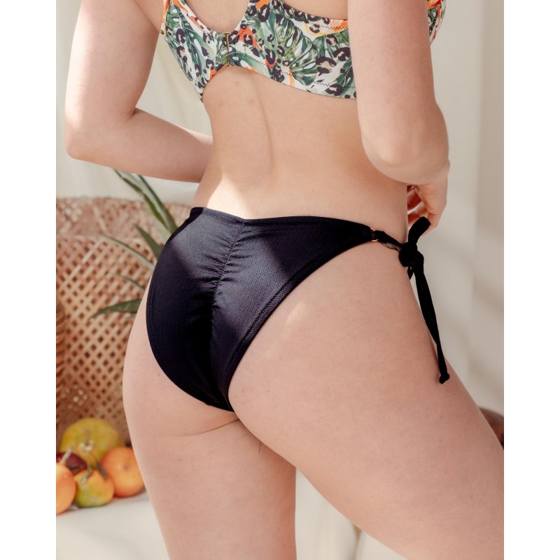 Eleva tu look de playa con una prenda que lo tiene todo. Diseñada con una tecnología que realza los glúteos de manera sutil y elegante, esta pieza se adapta perfectamente a tu cuerpo gracias a sus amarraderos laterales. Es el complemento ideal para cualquier top de nuestra colección, brindándote seguridad y un bronceado impecable.