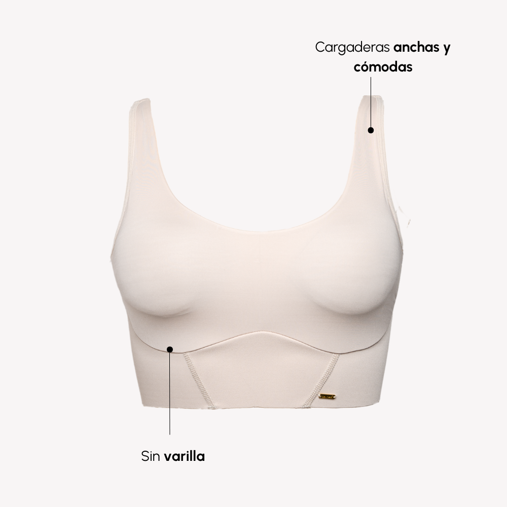 Brasier tipo top, ligero y flexible, con soporte suave gracias a su costura en la base.