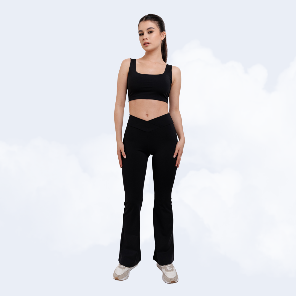 Pantalón de compresión media con pretina en V y fit acampanado que estiliza el abdomen y realza la figura sin marcar, pensado para moverse contigo en cualquier rutina.
