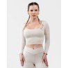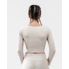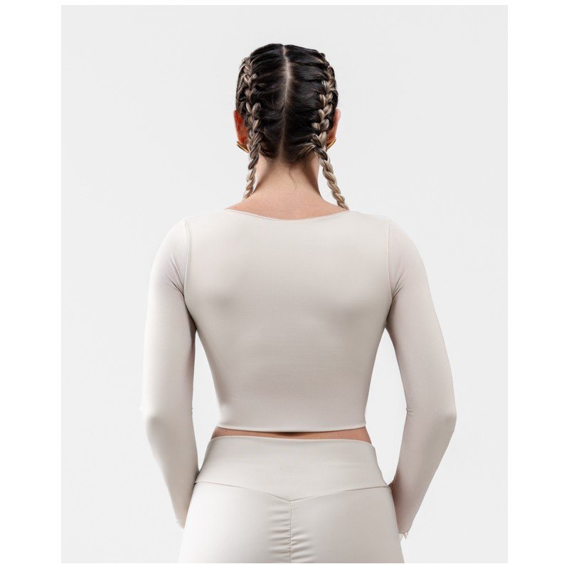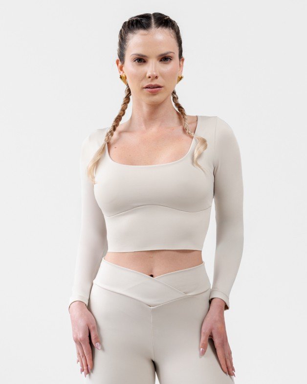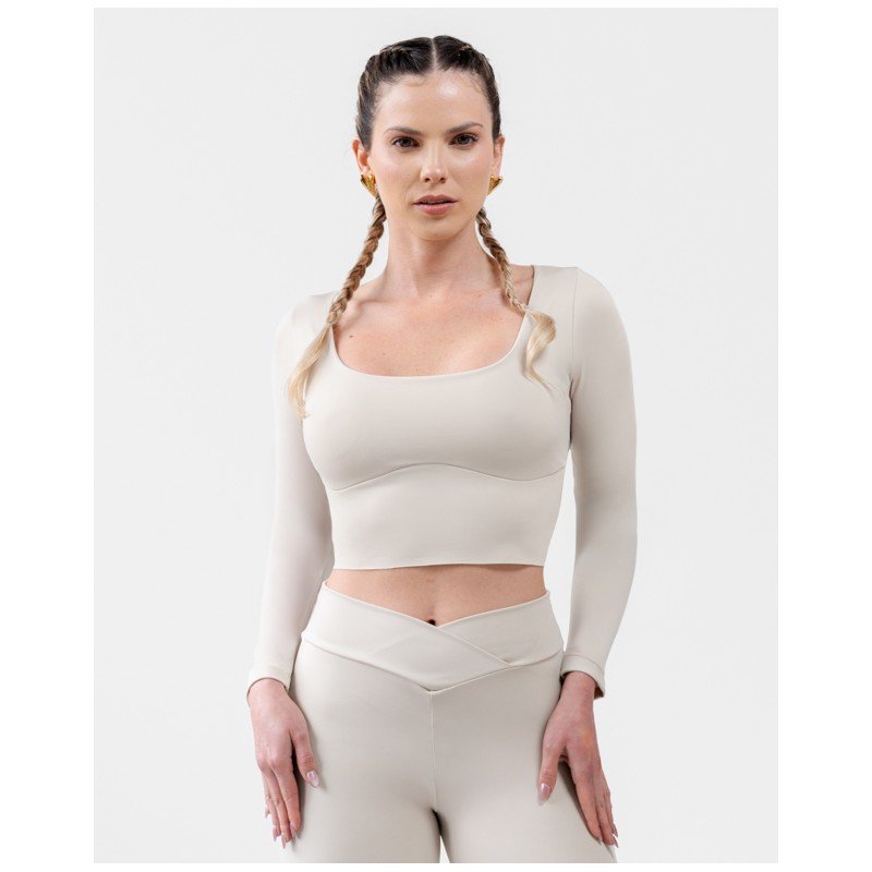 • Compresión modeladora en mangas que estiliza los brazos