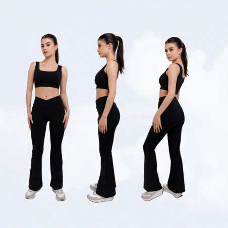 El pantalón Nimbus está diseñado para acompañarte en todo momento. Su pretina en V estiliza la zona abdominal sin generar cortes incómodos, y al no tener costura al centro evita marcas en la parte íntima. Además, su efecto levanta cola invisible realza la figura de forma natural y discreta, sin pliegues ni arrugas visibles. El fit acampanado alarga visualmente las piernas y lo vuelve una prenda versátil que se adapta a cualquier rutina o plan.