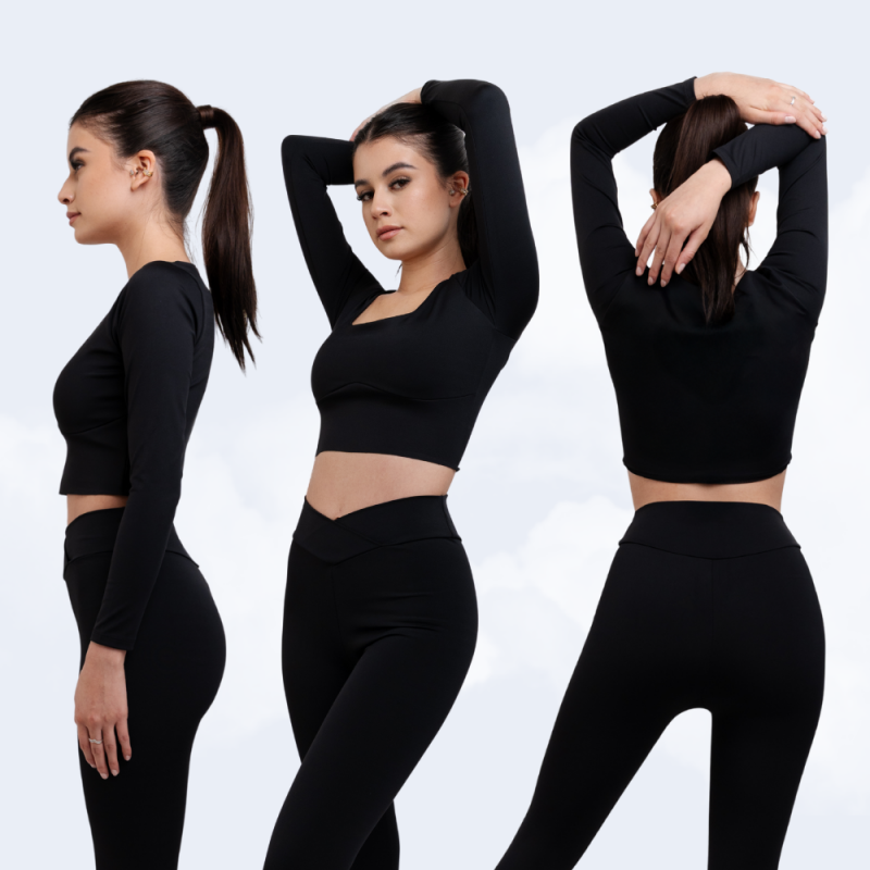 El top Aura está diseñado para moldear, sostener y acompañarte en cada movimiento sin necesidad de estructuras rígidas. Su compresión estratégica en las mangas ayuda a definir la forma de los brazos, mientras que la base estructurada sigue el contorno natural del busto para dar soporte y realce sin usar varillas. El escote cuadrado equilibra elegancia y funcionalidad, y su fit ajustado se mantiene en su lugar incluso en entrenamientos intensos.