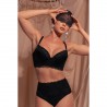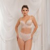 Panty tiro alto con combinación de encaje y microfibra, diseñado para dar cubrimiento completo y soporte suave gracias a su tul de control interno en abdomen.