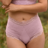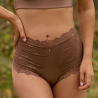 Panty cachetero de tiro alto en encaje elástico hipoalergénico, diseñado para ofrecer cubrimiento total y una sensación suave que no marca.